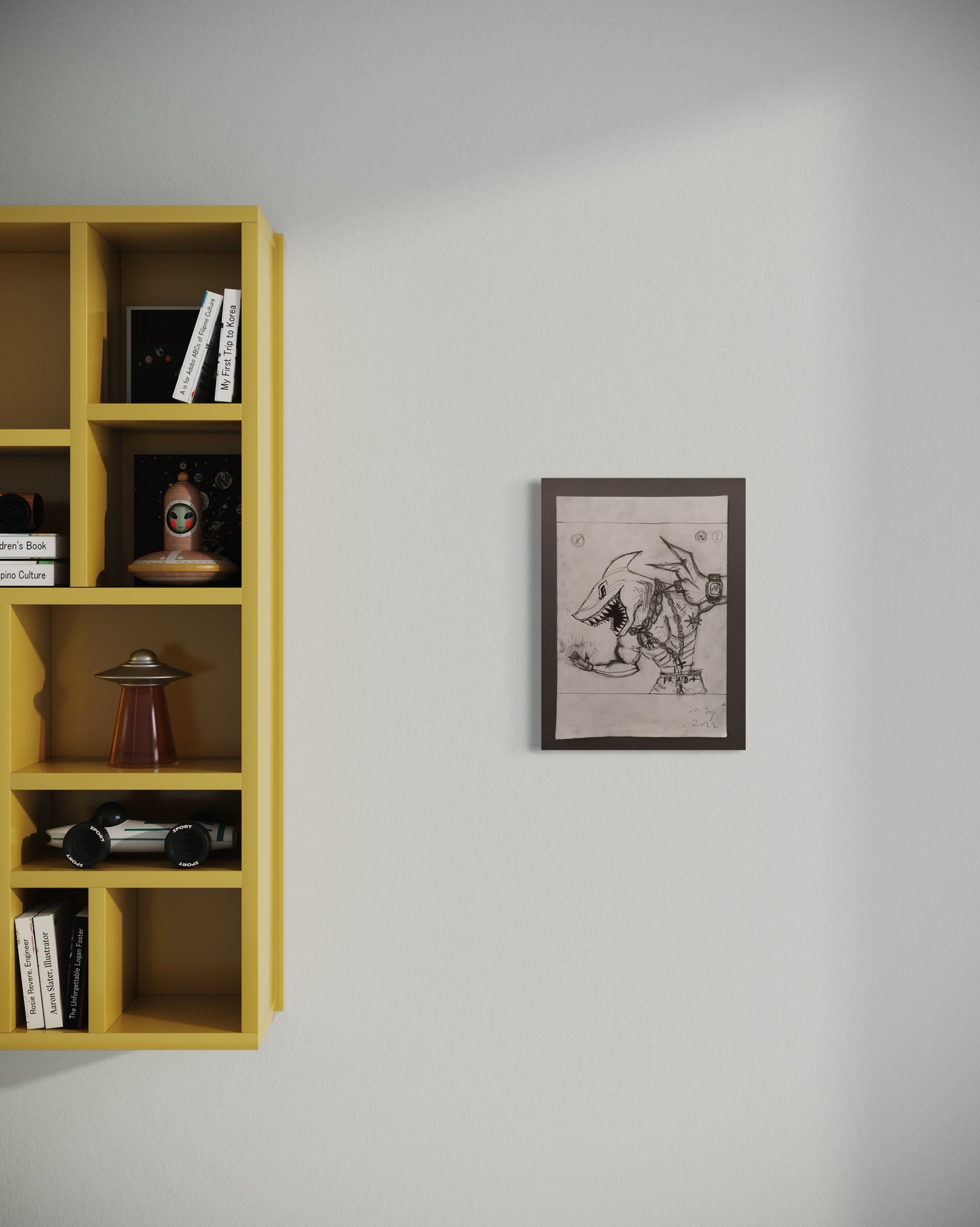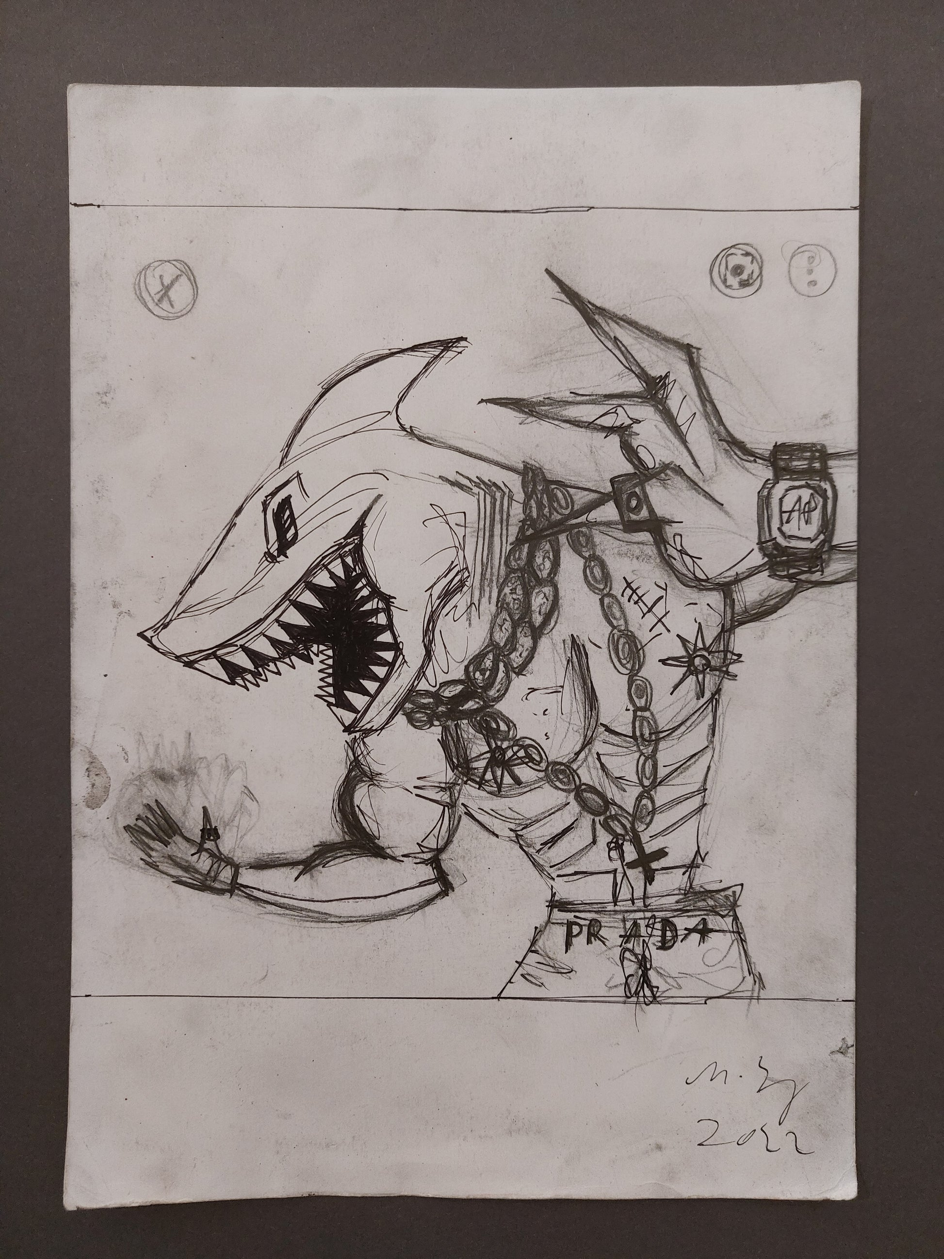 Dies ist die Skizze des Hauptkunstwerks für die Ausstellung ›HAISOCIETY‹, die 2022 in der Lachenmann Art Galerie in Frankfurt gezeigt wurde.